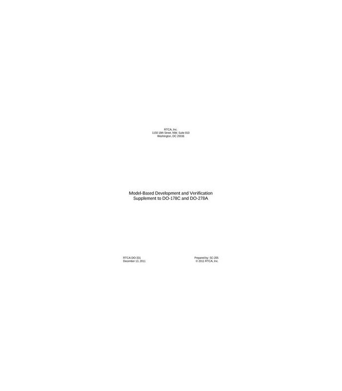 RTCA DO-331 Model Based Development and Verification Supplement to DO-178C and DO-278A