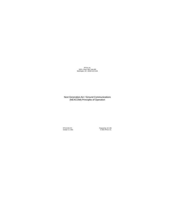 RTCA DO-274 Next Generation Air/Ground Communications (NEXCOM) Principles of Operation