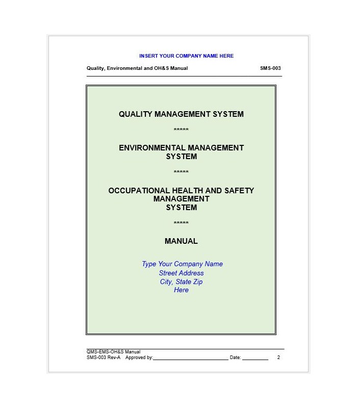A combined Manual, new - 8 Procedures, 3 Work Instructions, 17 Forms and Attachments, and 10 existing Procedures with minor updates along with 3 existing EMS Work Instructions.