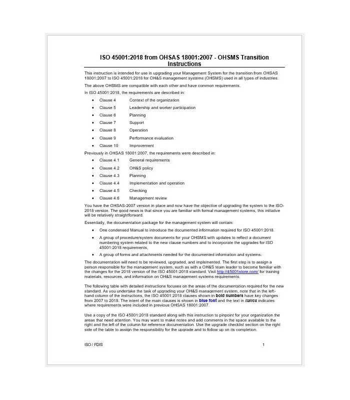 OHSAS 18001:2007 to ISO 45001:2018 SMS Transition Instructions