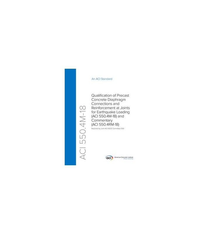 ACI 550.4M prescribes testing and evaluation requirements for mechanical connections and reinforcement at joints intended for use under the design provisions of ASCE/SEI 7 and ACI 318M for precast concrete diaphragms subject to earthquake loading. These mechanical connections and reinforcement at joints transfer the vertical and in-plane forces between the precast concrete members that comprise the diaphragm, and between the diaphragm and vertical elements of the seismic-force-resisting system of the structure.