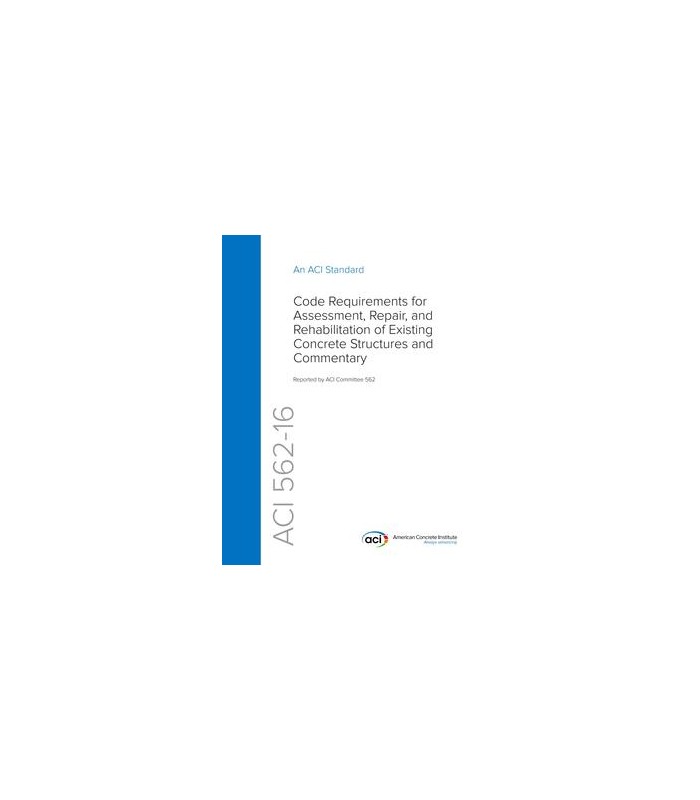 ACI 562-16, "Code Requirements for Assessment, Repair and Rehabilitation of Existing Concrete Structures" was developed to provide design professionals involved in the assessment of existing concrete structures a code for the assessment of the damage and deterioration, and the design of appropriate repair and rehabilitation strategies. The code provides minimum requirements for assessment, repair, and rehabilitation of existing structural concrete buildings, members, systems and where applicable, nonbuilding structures. ACI 562-16 was specifically developed to work with the International Existing Building code (IEBC) or to be adopted as a stand-alone code.