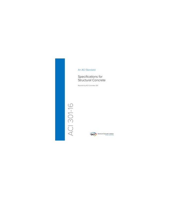 The first five sections of this Specification cover general construction requirements for cast-in-place structural concrete and slabs-on-ground. These sections cover materials and proportioning of concrete; reinforcement and prestressing steel; production, placing, finishing, and curing of concrete; formwork performance criteria and construction; treatment of joints; embedded items; repair of surface defects; and finishing of formed and unformed surfaces. Provisions governing testing, evaluation, and acceptance of concrete as well as acceptance of the structures are included. The remaining sections are devoted to architectural concrete, lightweight concrete, mass concrete, post-tensioned concrete, shrinkage-compensating concrete, industrial floor slabs, tilt-up construction, precast structural concrete, and precast architectural concrete.