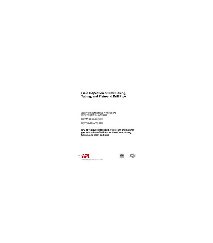 API RP 5A5 (R2015) Field Inspection of New Casing, Tubing, and Plain-end Drill Pipe, Seventh Edition, Includes Errata (2009)