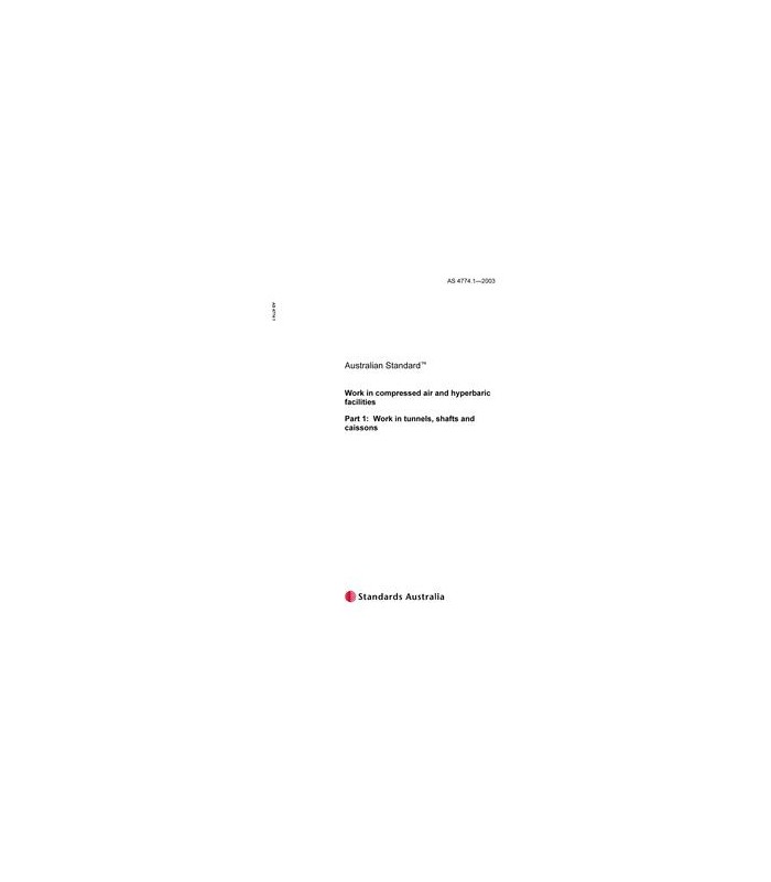 Specifies requirements for medical supervision of personnel, operating procedures, equipment and general precautions for work in tunnels,shafts and caissons where compressed air is the breathing medium and the maximum presssure of the work area is 4 bar (400 kPa) gauge. Appendices include medical standards and examination forms, information for medical practitioners, instructions for persons working in compressed air and information on decompression illness.