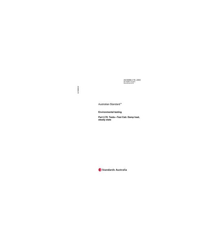 AS 60068.2.78-2003 [ Current ] Environmental testing, Part 2.78: Tests - Test Cab: Damp heat, steady state