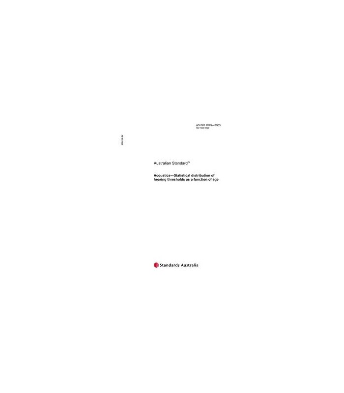 AS ISO 7029-2003 [ Superseded ] Acoustics - Statistical distribution of hearing thresholds as a function of age