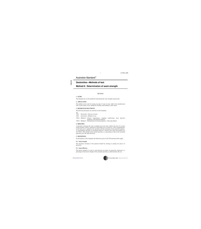 AS 3706.6-2000 [ Superseded ] Geotextiles - Methods of test - Determination of seam strength