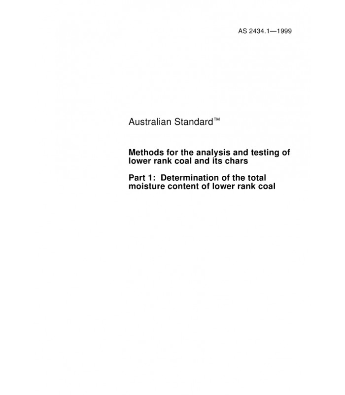 AS 2434.1-1999 [ Current ] Methods for the analysis and testing of lower rank coal and its chars, Part 1: Determination of the total moisture content of lower rank coal