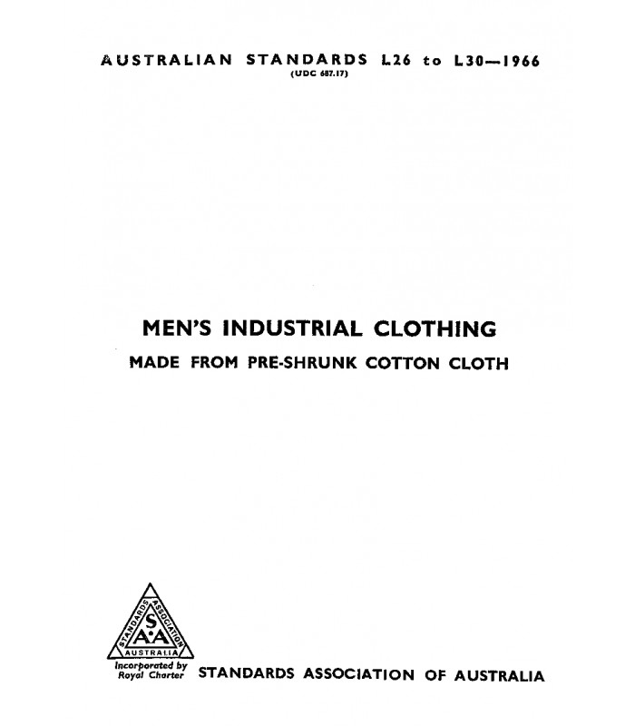 This specification covers the sizing and make-up of men's work trousers made from pre-shrunk cotton cloth. In addition, certain quality requirements are laid down.