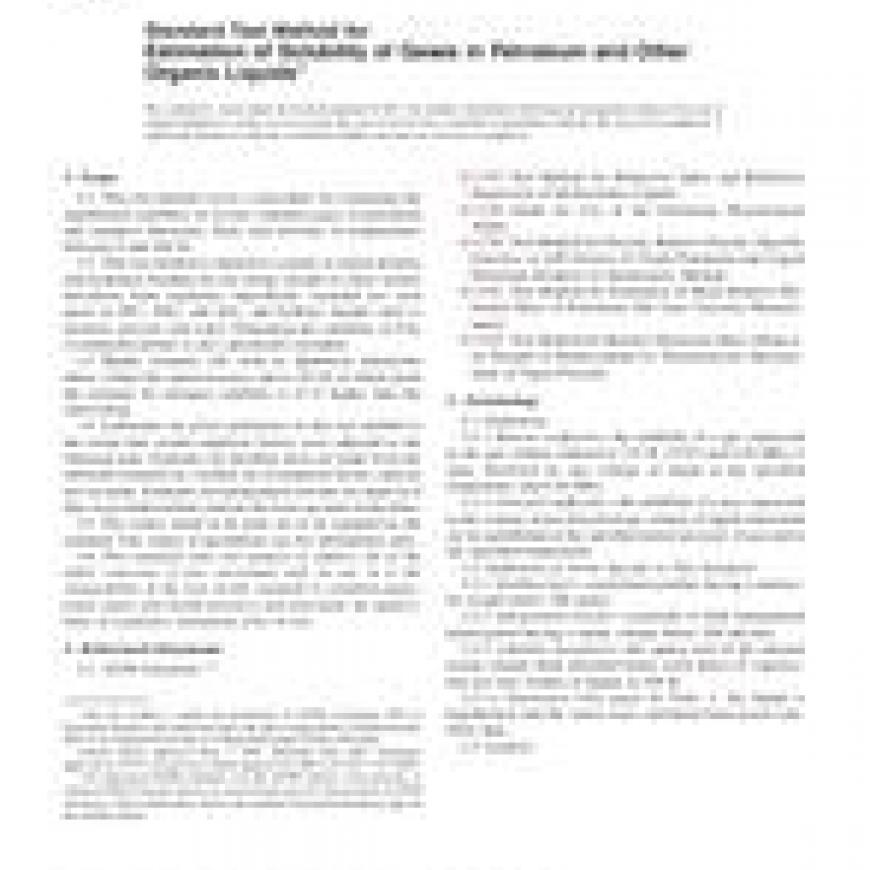 ASTM D3827-92(2007) Standard Test Method for Estimation of Solubility of Gases in Petroleum and Other Organic Liquids