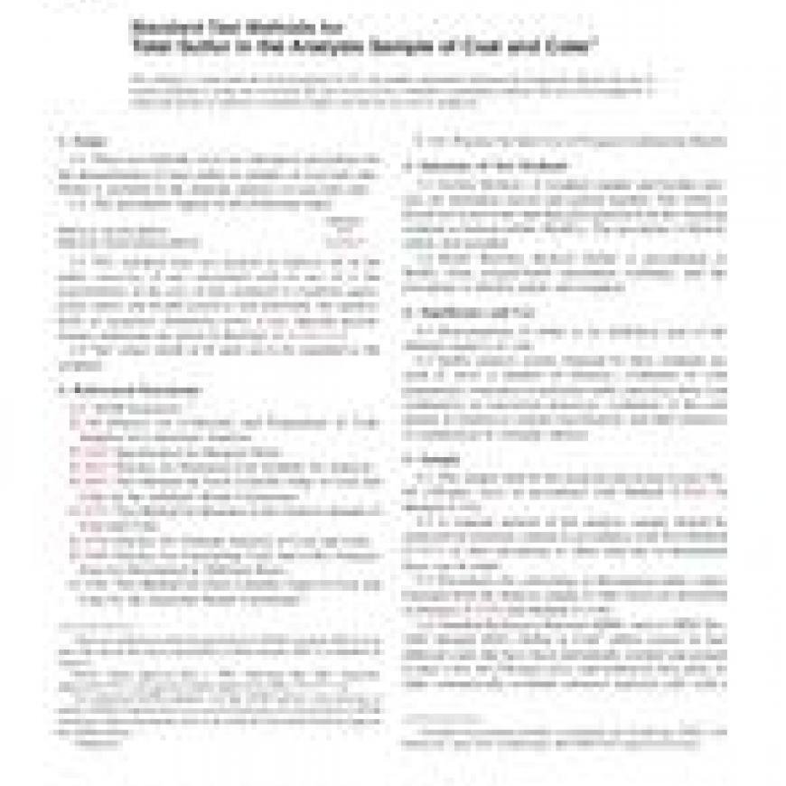1.1 These test methods cover two alternative procedures for the determination of total sulfur in samples of coal and coke. Sulfur is included in the ultimate analysis of coal and coke.