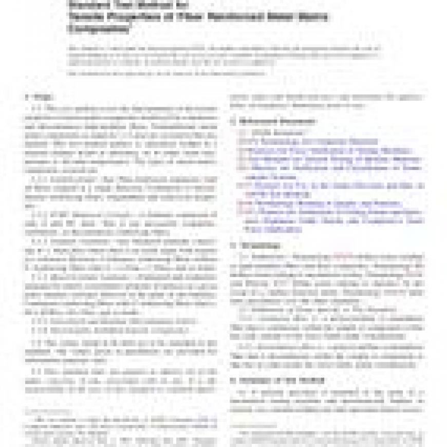 1.1 This test method covers the determination of the tensile properties of metal matrix composites reinforced by continuous and discontinuous high-modulus fibers. Nontraditional metal matrix composites as stated in also are covered in this test method. This test method applies to specimens loaded in a uniaxial manner tested in laboratory air at either room temperature or elevated temperatures. The types of metal matrix composites covered are: