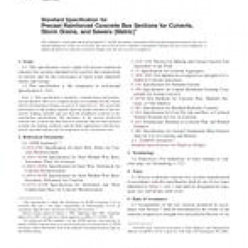 1.1 This specification covers single-cell precast reinforced concrete box sections intended to be used for the construction of culverts and for the conveyance of storm water industrial wastes and sewage.