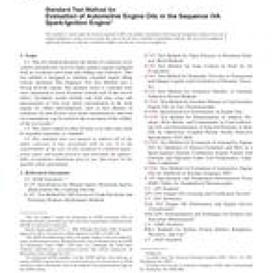 ASTM D6891-06a Standard Test Method for Evaluation of Automotive Engine Oils in the Sequence IVA Spark-Ignition Engine