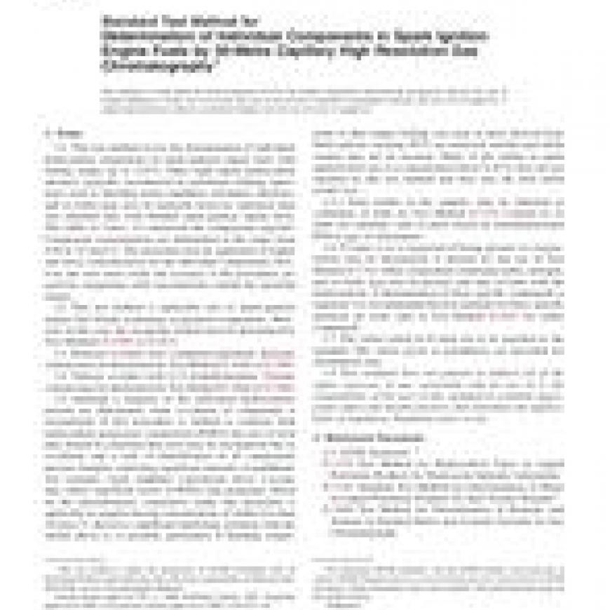 ASTM D6733-01(2006) Standard Test Method for Determination of Individual Components in Spark Ignition Engine Fuels by 50-Metre Capillary High Resolution Gas Chromatography