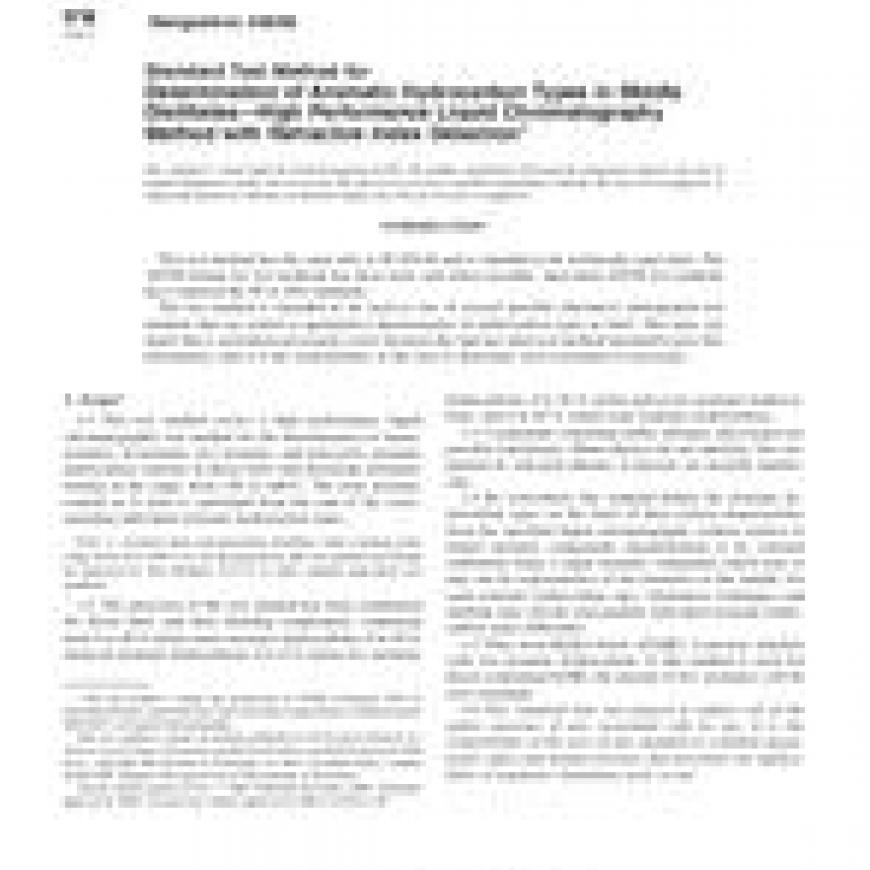 ASTM D6591-06 Standard Test Method for Determination of Aromatic Hydrocarbon Types in Middle Distillates-High Performance Liquid Chromatography Method with Refractive Index Detection