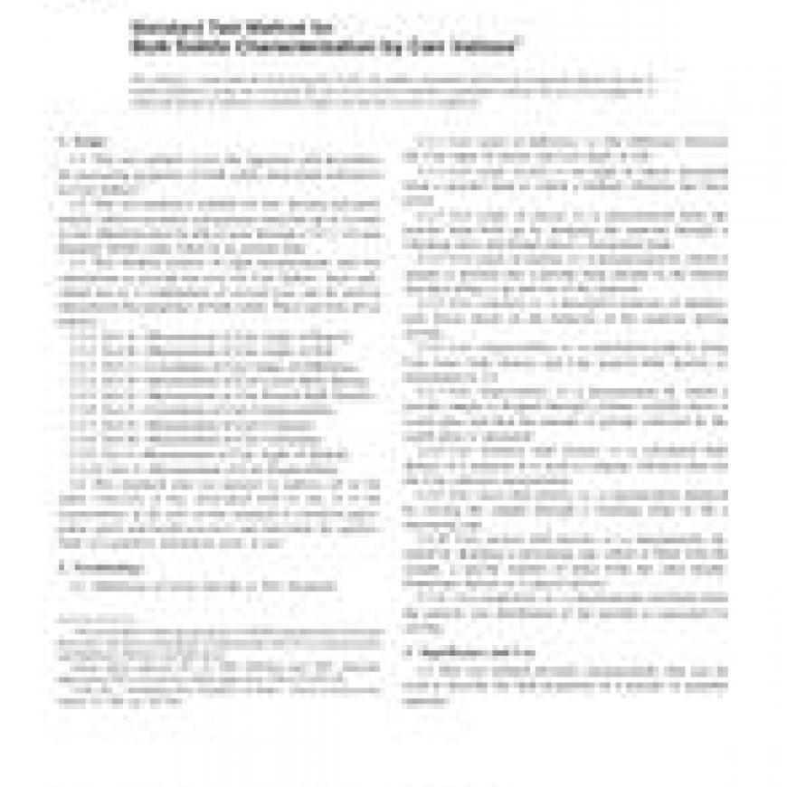 1.1 This test method covers the apparatus and procedures for measuring properties of bulk solids, henceforth referred to as Carr Indices.