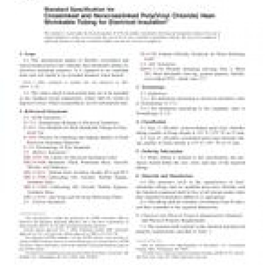 1.1 This specification applies to flexible, crosslinked and noncrosslinked poly(vinyl chloride) heat-shrinkable tubing for electrical insulating purposes. It is supplied in an expanded form and will shrink to its extruded diameter when heated.
