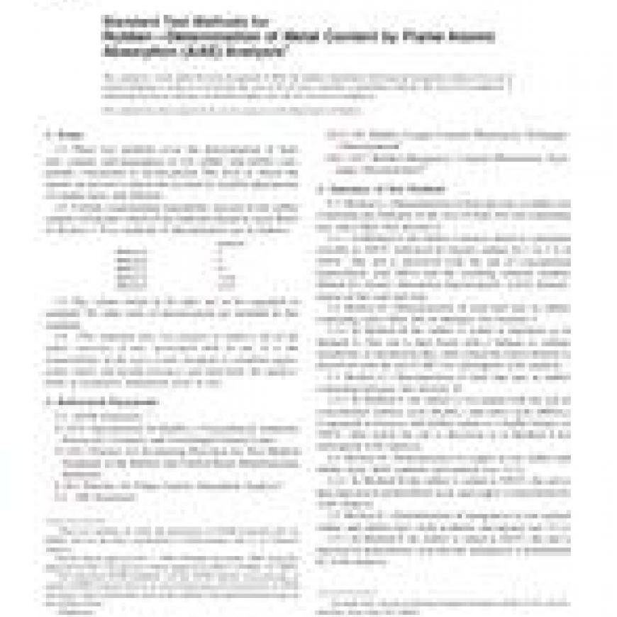 ASTM D4004-06 Standard Test Methods for Rubber - ;Determination of Metal Content by Flame Atomic Absorption (AAS) Analysis