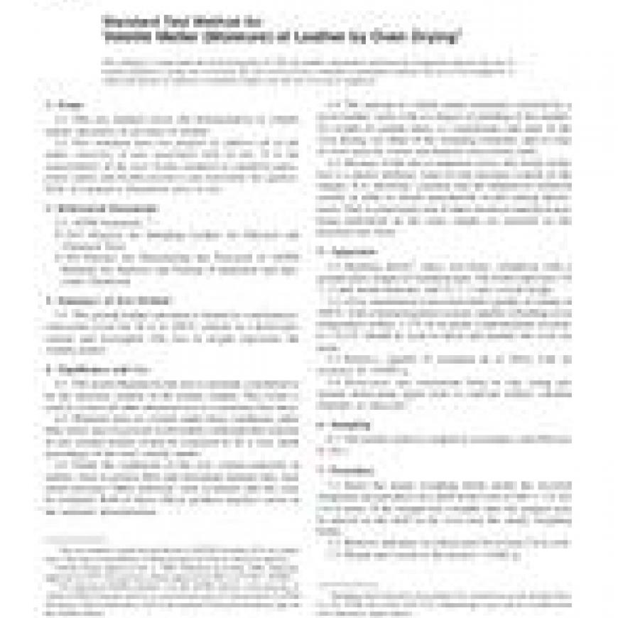 ASTM D3790-79(2006) Standard Test Method for Volatile Matter (Moisture) of Leather by Oven Drying
