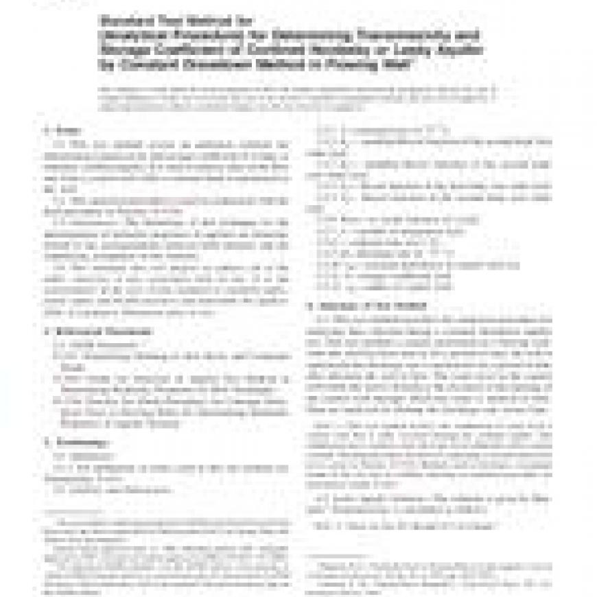 ASTM D5855-95(2006) Standard Test Method for (Analytical Procedure) for Determining Transmissivity and Storage Coefficient of Confined Nonleaky or Leaky Aquifer by Constant Drawdown Method in Flowing Well