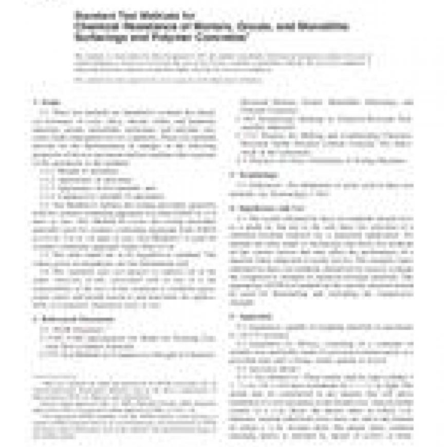 ASTM C267-01(2006) Standard Test Methods for Chemical Resistance of Mortars, Grouts, and Monolithic Surfacings and Polymer Concretes