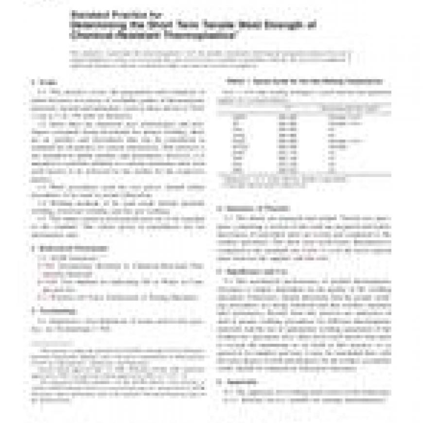 ASTM C1147-01(2006) Standard Practice for Determining the Short Term Tensile Weld Strength of Chemical-Resistant Thermoplastics