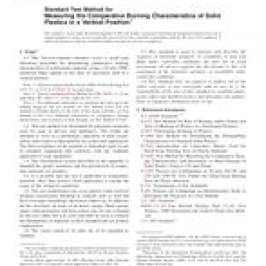 ASTM D3801-06 Standard Test Method for Measuring the Comparative Burning Characteristics of Solid Plastics in a Vertical Position