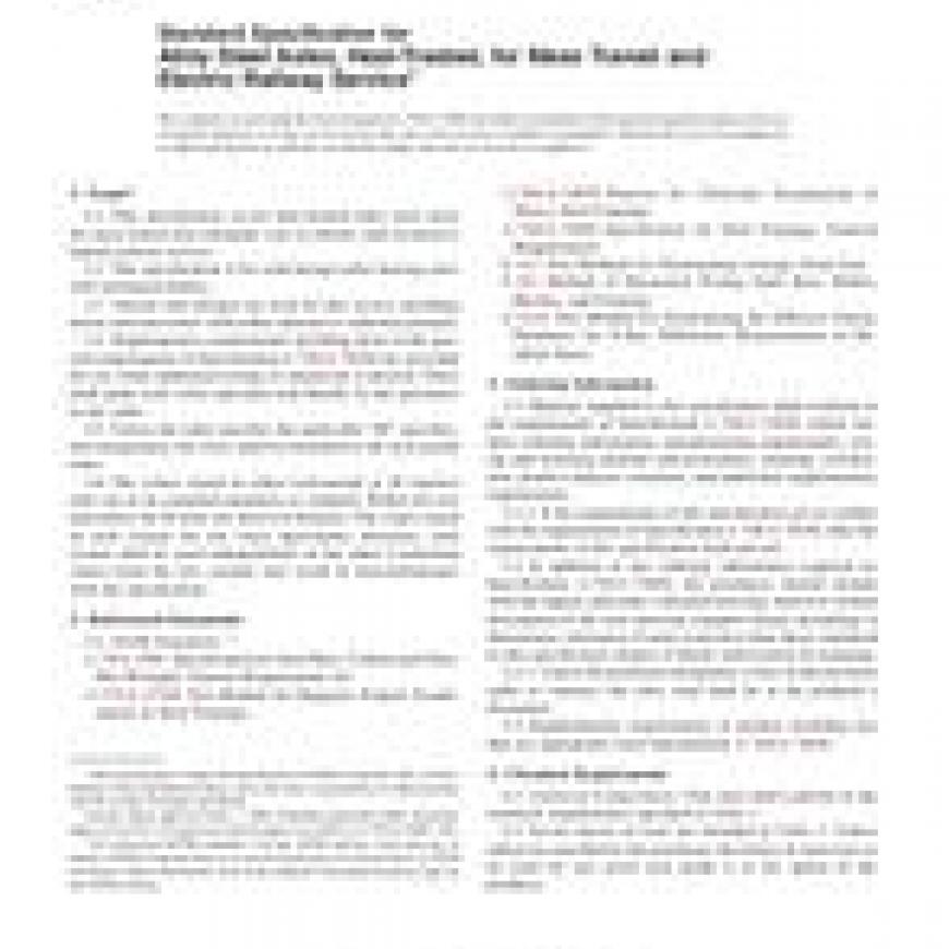 1.1 This specification covers heat-treated alloy steel axles for mass transit and commuter cars in electric and locomotive hauled railway service.