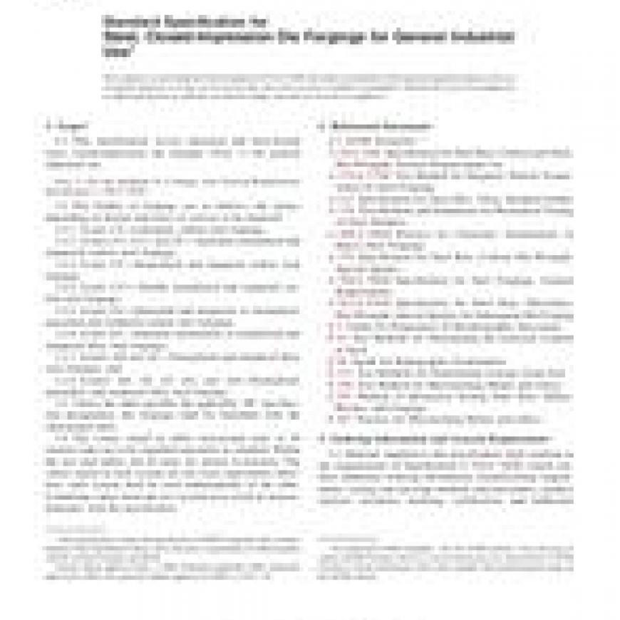 1.1 This specification covers untreated and heat-treated steel, closed-impression die forgings (Note 1) for general industrial use. Note 1 - For the definition of a forging, refer General Requirements Specification A 788/A 788M.