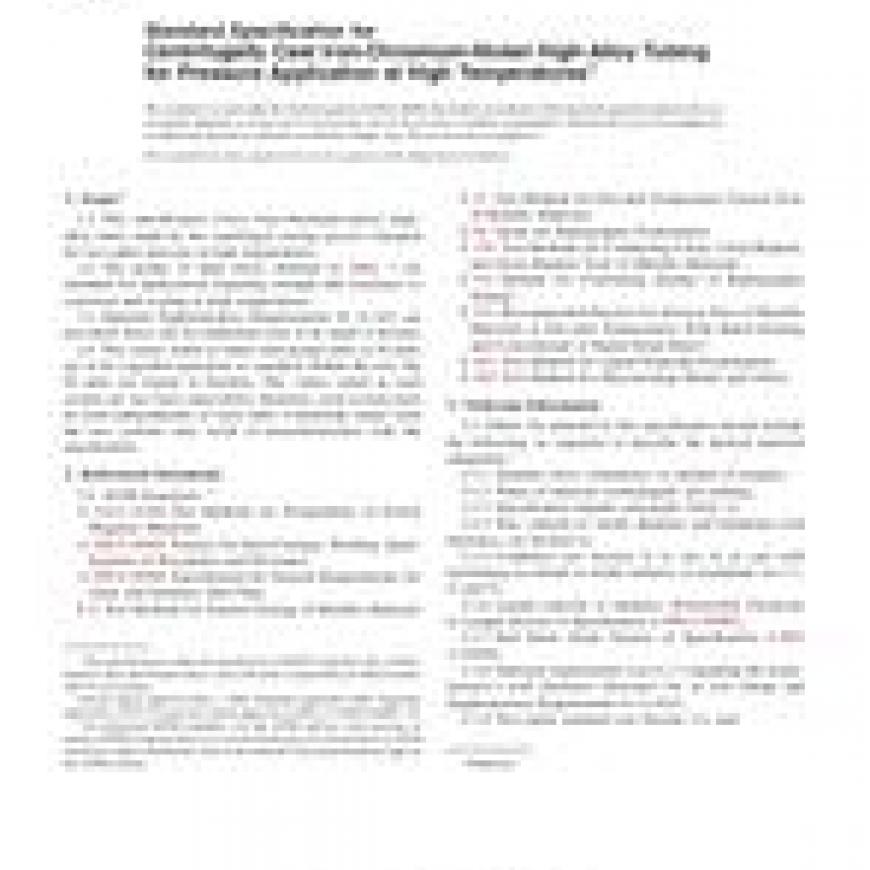1.1 This specification covers iron-chromium-nickel, high-alloy tubes made by the centrifugal casting process intended for use under pressure at high temperatures.