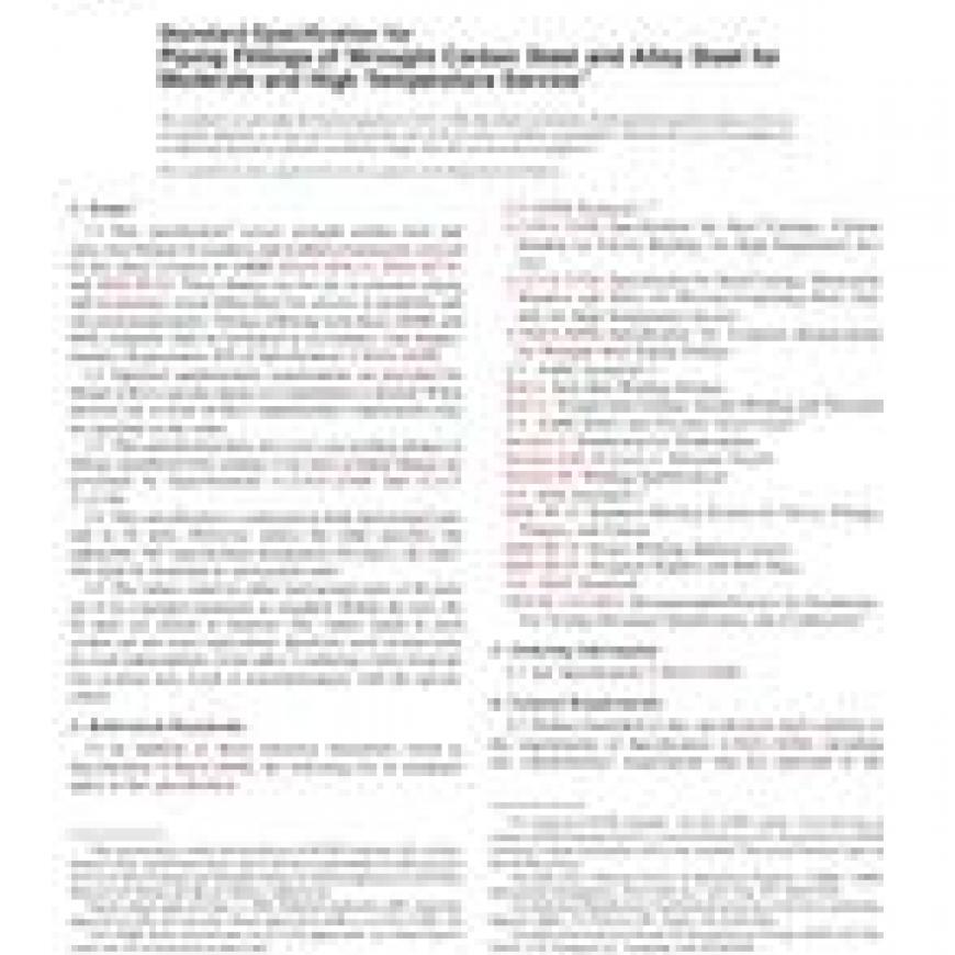 1.1 This specification covers wrought carbon steel and alloy steel fittings of seamless and welded construction covered by the latest revision of ASME B16.9, B16.11, MSS SP-79, and MSS SP-95. These fittings are for use in pressure piping and in pressure vessel fabrication for service at moderate and elevated temperatures. Fittings differing from these ASME and MSS standards shall be furnished in accordance with Supplementary Requirement S58 of Specification A 960/A 960M.