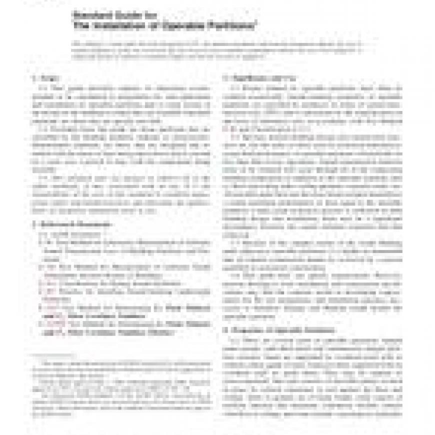 1.1 This guide describes options of intructions recommended to be considered in preparation for, and application and installation of, operable partitions and, to some extent, in the design of the building in which they are installed. Operable partitions are those that are quickly movable.