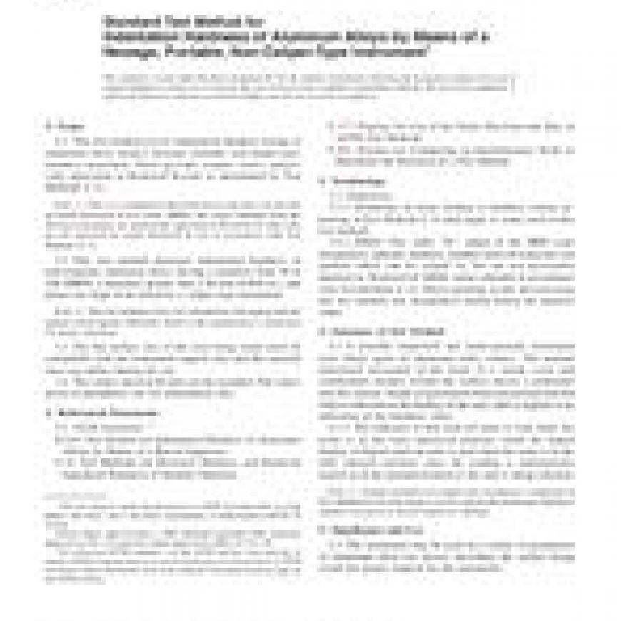 1.1 This test method covers indentation hardness testing of aluminum alloys using a Newage, portable, non-caliper-type, hardness instrument which provides readout values numerically equivalent to Rockwell B-scale as determined by Test Methods E 18.