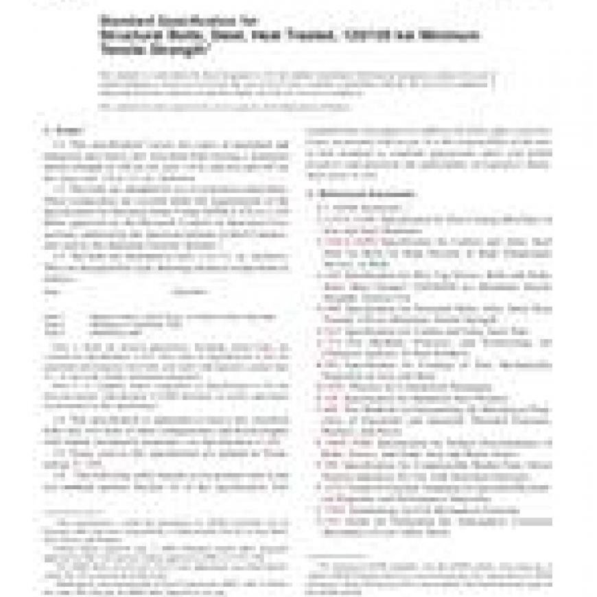 1.1 This specification covers two types of quenched and tempered steel heavy hex structural bolts having a minimum tensile strength of 120 ksi for sizes 1.0 in. and less and 105 ksi for sizes over 1.0 to 11/2 in., inclusive.