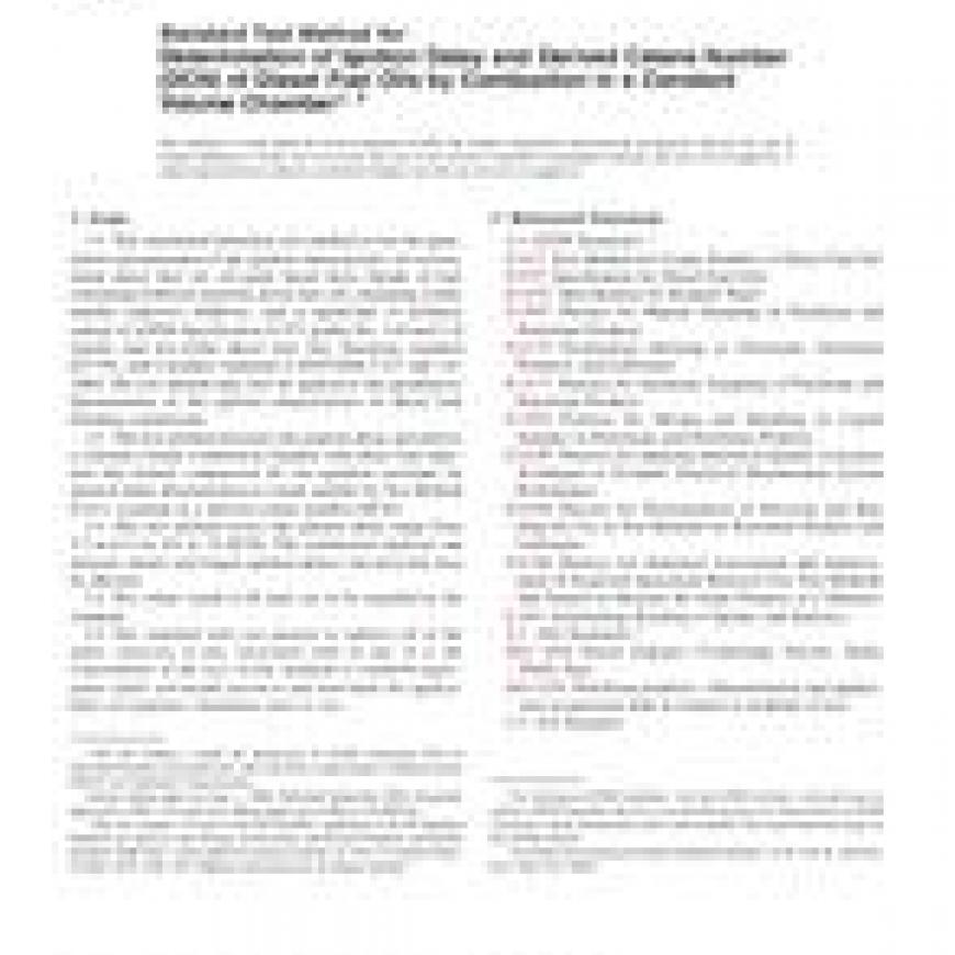 ASTM D6890-06 Standard Test Method for Determination of Ignition Delay and Derived Cetane Number (DCN) of Diesel Fuel Oils by Combustion in a Constant Volume Chamber
