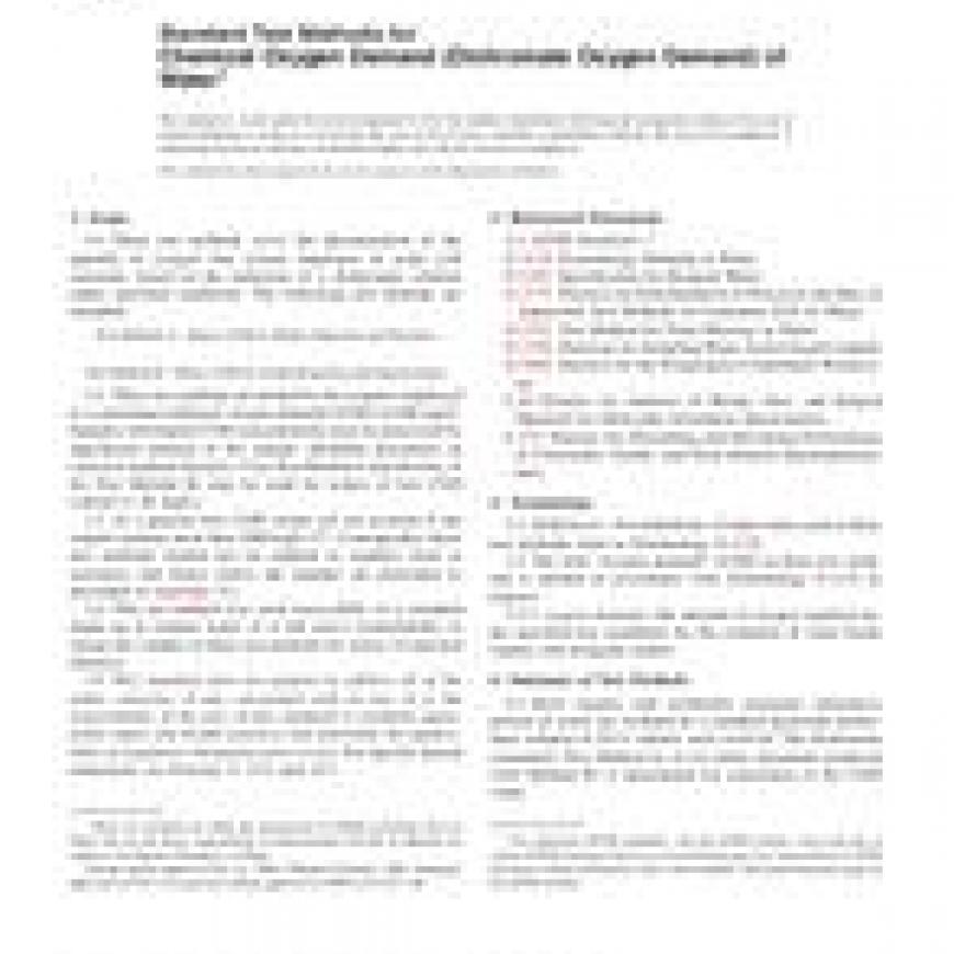 ASTM D1252-06 Standard Test Methods for Chemical Oxygen Demand (Dichromate Oxygen Demand) of Water
