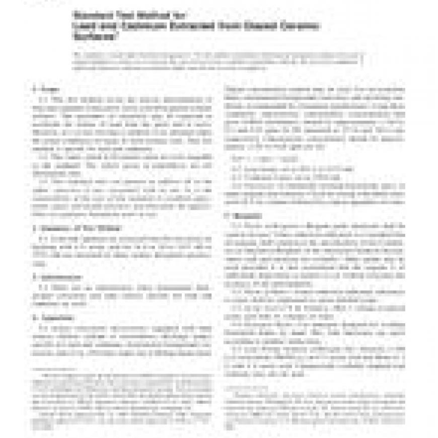 ASTM C738-94(2006) Standard Test Method for Lead and Cadmium Extracted from Glazed Ceramic Surfaces