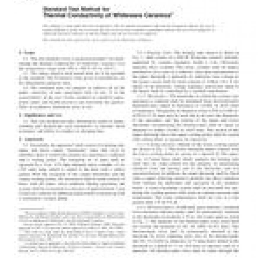 1.1 This test method covers a general procedure for determining the thermal conductivity of whiteware ceramics over the temperature range from 100 to 300