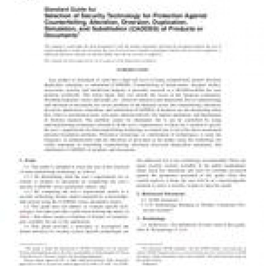 ASTM F1448-93a(2006) Standard Guide for Selection of Security Technology for Protection Against Counterfeiting, Alteration, Diversion, Duplication, Simulation, and Substitution (CADDSS) of Products or Documents