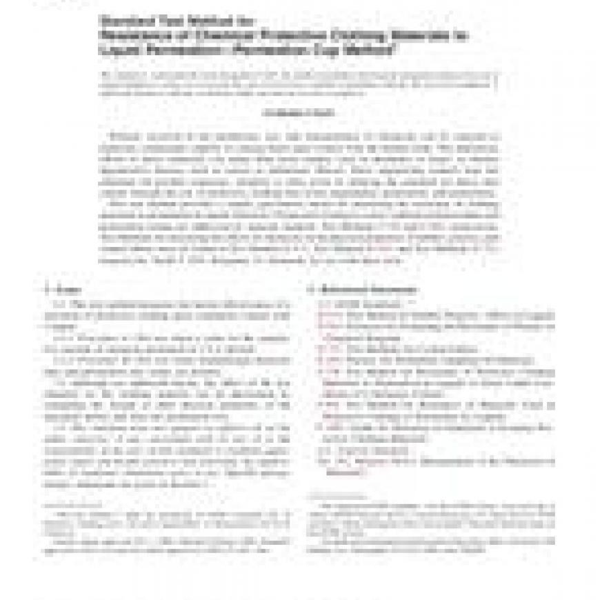 ASTM F1407-99a(2006) Standard Test Method for Resistance of Chemical Protective Clothing Materials to Liquid Permeation-Permeation Cup Method