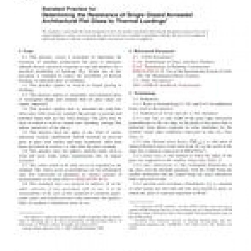 1.1 This practice covers a procedure to determine the resistance of annealed architectural flat glass to thermally induced stresses caused by exposure to sun and shadows for a specified probability of breakage (P