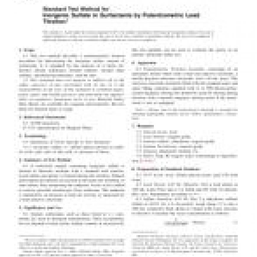 ASTM D6174-01(2006) Standard Test Method for Inorganic Sulfate in Surfactants by Potentiometric Lead Titration (Withdrawn 2015)
