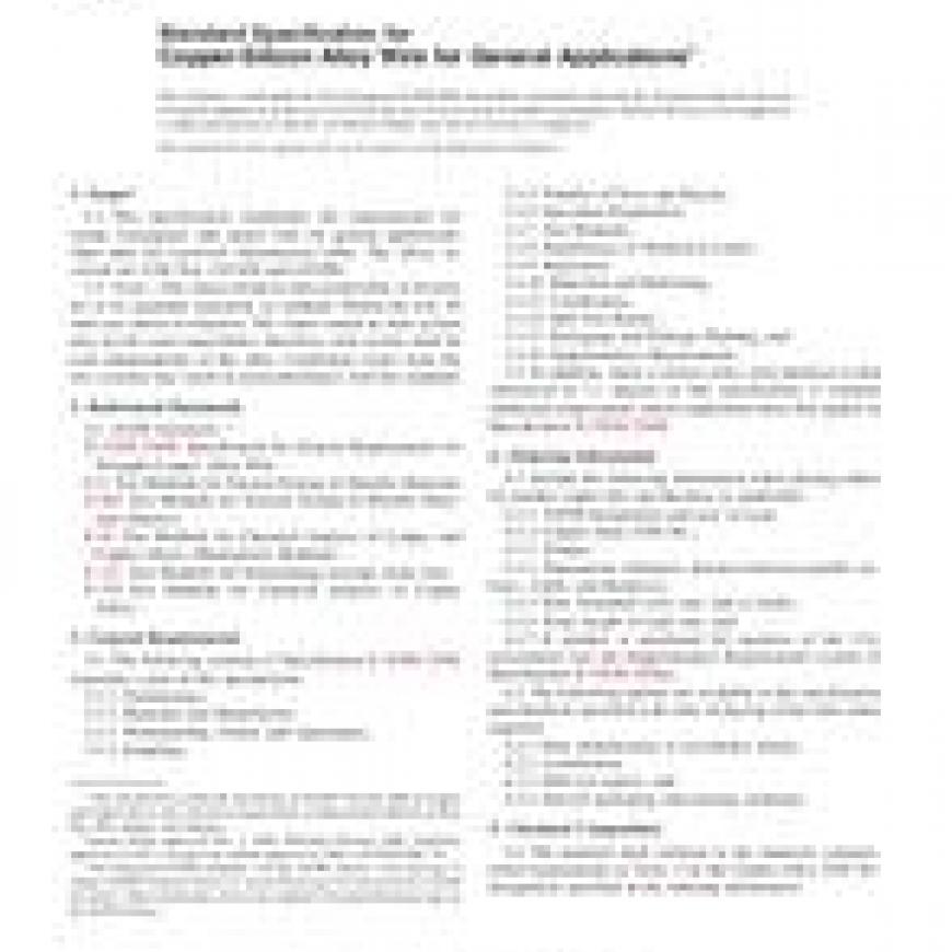 1.1 This specification establishes the requirements for round, rectangular, and square wire for general applications other than for electrical transmission cable. The alloys involved are UNS Nos. C65100 and C65500.