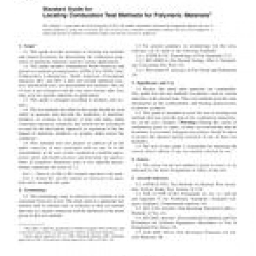 1.1 This guide provides assistance in locating test methods and related documents for determining the combustion properties of polymeric materials used for various applications.