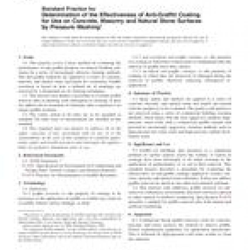 ASTM D7089-06 Standard Practice for Determination of the Effectiveness of Anti-Graffiti Coating for Use on Concrete, Masonry and Natural Stone Surfaces by Pressure Washing