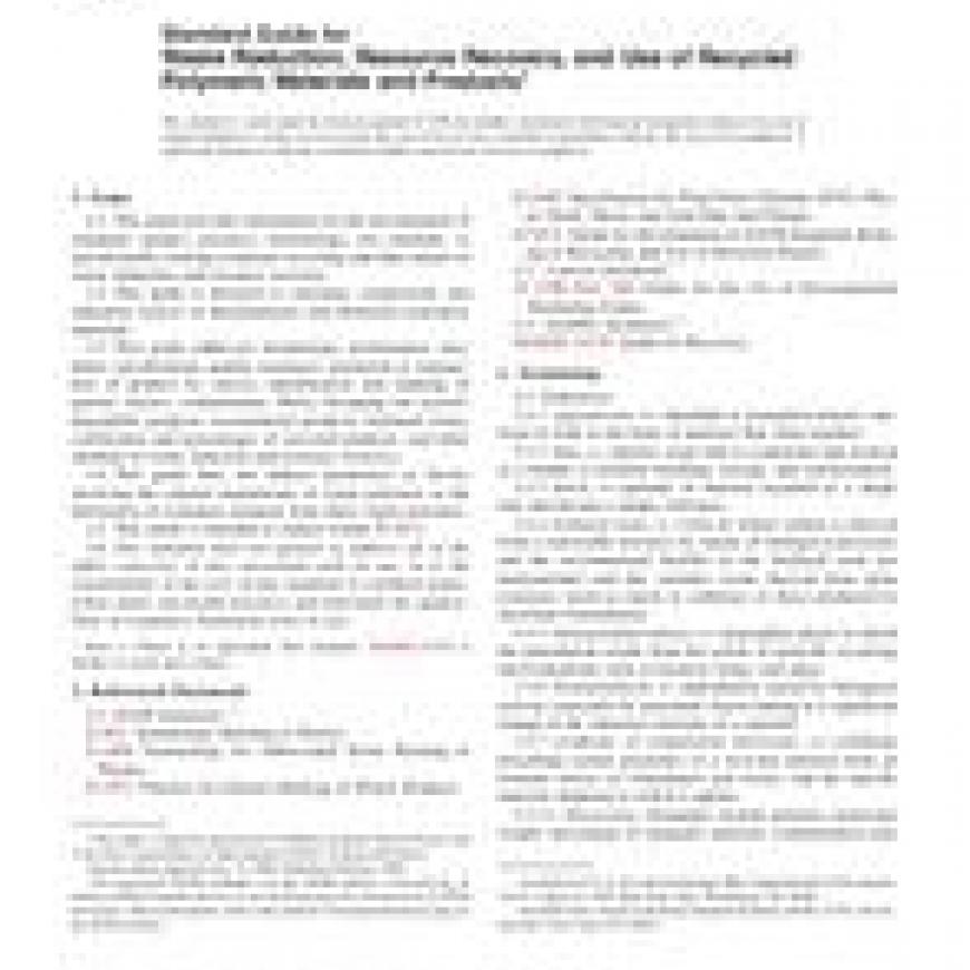 ASTM D7209-06 Standard Guide for Waste Reduction, Resource Recovery, and Use of Recycled Polymeric Materials and Products (Withdrawn 2015)