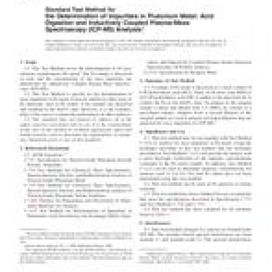 ASTM C1637-06 Standard Test Method for the Determination of Impurities in Plutonium Metal: Acid Digestion and Inductively Coupled Plasma-Mass Spectroscopy (ICP-MS) Analysis