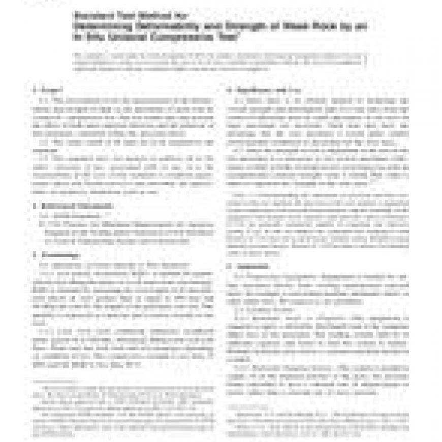 ASTM D4555-01(2005) Standard Test Method for Determining Deformability and Strength of Weak Rock by an In Situ Uniaxial Compressive Test